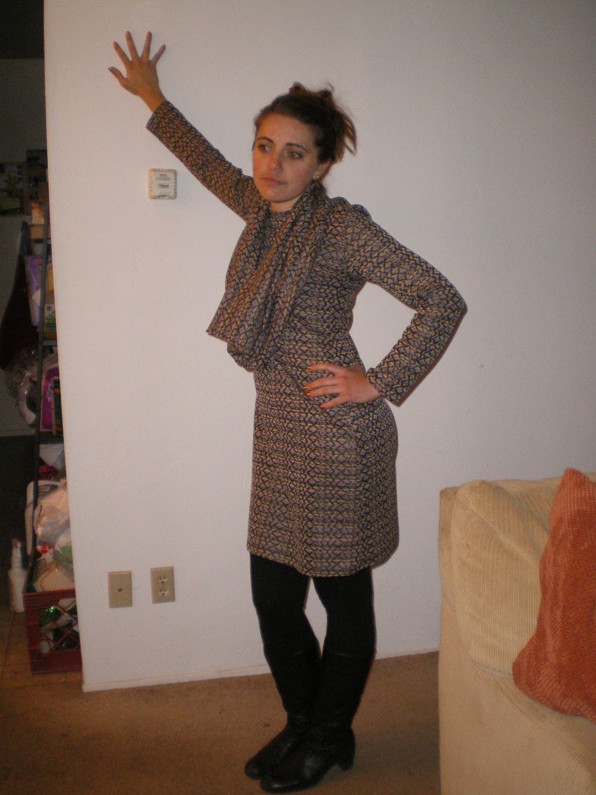 Overall, I'm happy with this dress. It's really comfy and I think the simplicity of the design lends itself to fun fabric or other cool details.  But I did have some fit issues.  I have an *ahem* full derriere and the fabric pools at the small on my back.  I read that somebody else on Pattern Review had the same issue, and she ended up inserting a waist seam and back darts.  I'm considering pinching in some back darts, but I like the look and idea of a just simple/easy T-shirt dress.